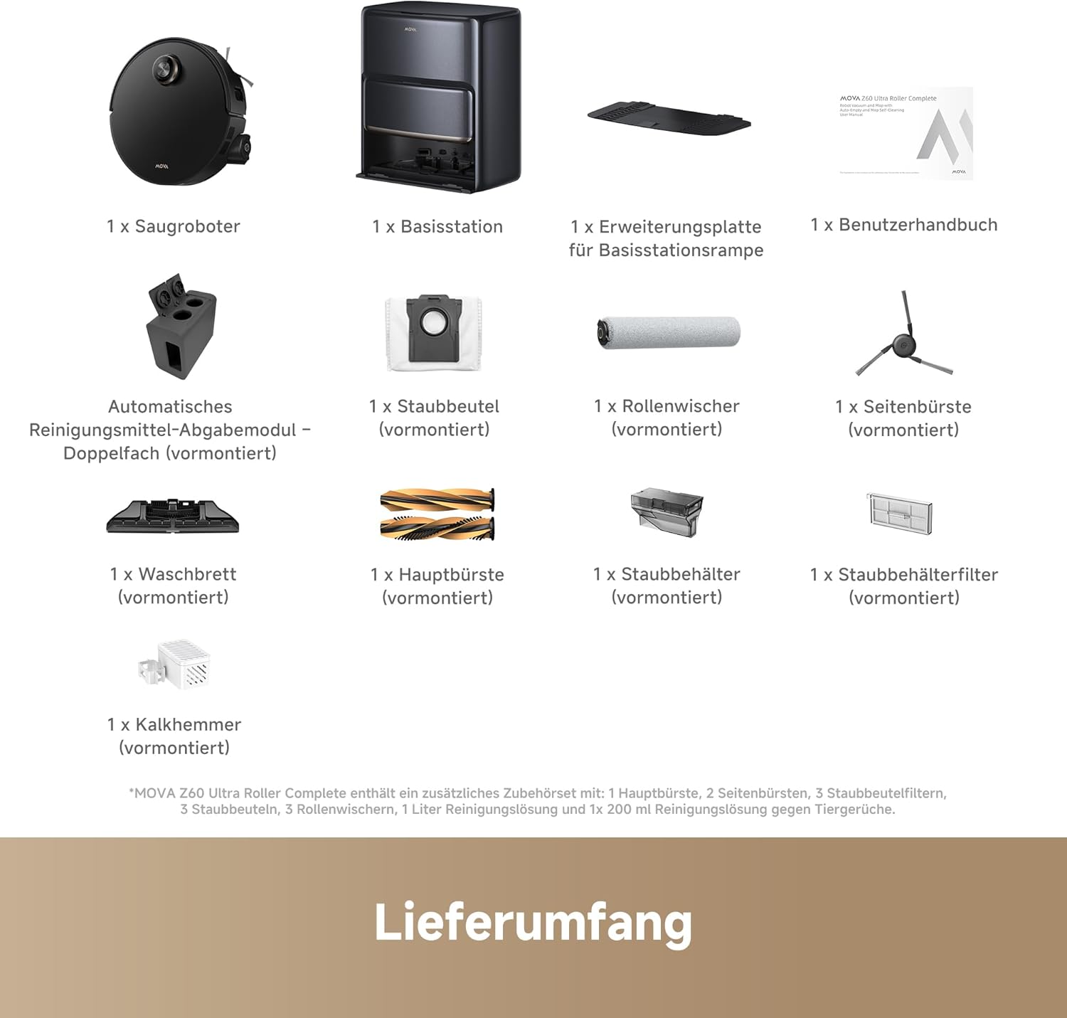 Mova V50 Ultra Complete Saugroboter mit Wischfunktion 24.000 Pa, 6cm Hindernisüberwindung, Liftable Navigation+RGB AI+LED, 80℃ Heißwasserwäsche & 63℃ Selbsttrocknung, DuoSolution System, Tricut Bürste