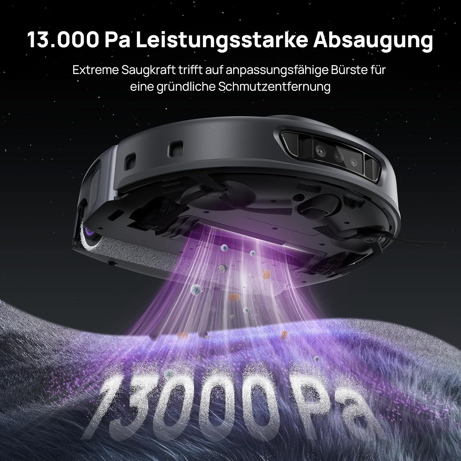 - 【13000 Pa super starke Saugkraft】Die branchenführende Saugkraft von 13000 Pa entfernt mühelos Staub, Haare, Katzenstreu, Teppichschmutz und tiefsitzenden Schmutz bei der täglichen Reinigung. Der 3i S10 Ultra Roboterstaubsauger erkennt automatisch Teppiche und passt seine Reinigung basierend auf voreingestellten Modi an