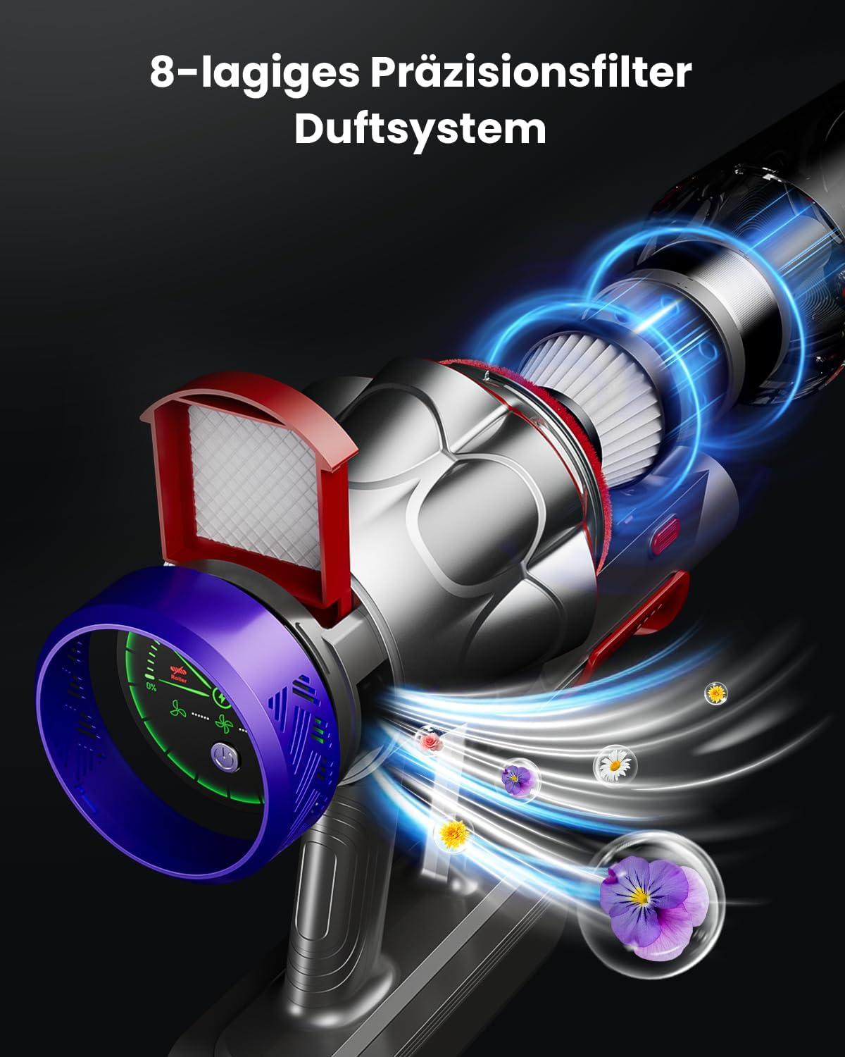 - 【580 W & 48 kPa Starke Saugleistung】 Avalsor Akku Staubsauger Kabellos überzeugt mit seinem marktführenden, bürstenlosen 580-W-Motor und Geräuschreduzierungstechnologie. Mit einer kraftvollen Saugleistung von 48 kPa entfernt er nicht nur gründlich Tierhaare und Flusen aus Teppichen, sondern bewältigt auch Krümel und hartnäckigen Schmutz problemlos. Seine Kraft erreicht mühelos Ecken, Kanten, Zwischenräume sowie Bereiche unter Möbeln und in der Höhe und ermöglicht so eine effiziente Tiefenreinigung Ihres gesamten Zuhauses, bei einem geringen Geräuschpegel von unter 62 dB, der Ihre Familie und Haustiere schont.