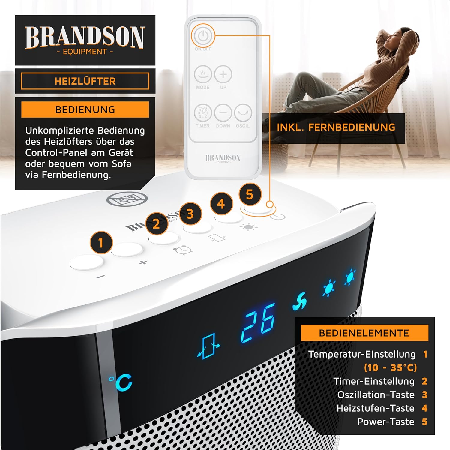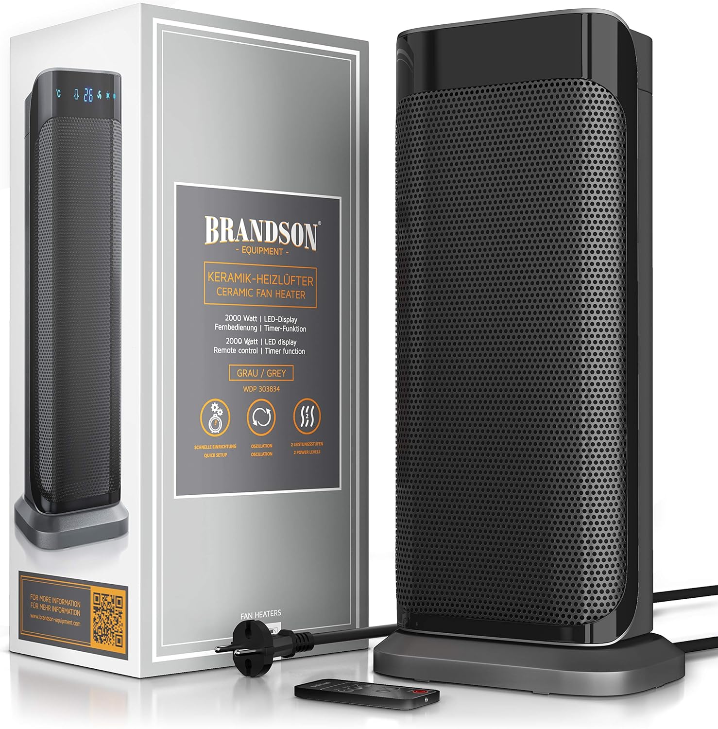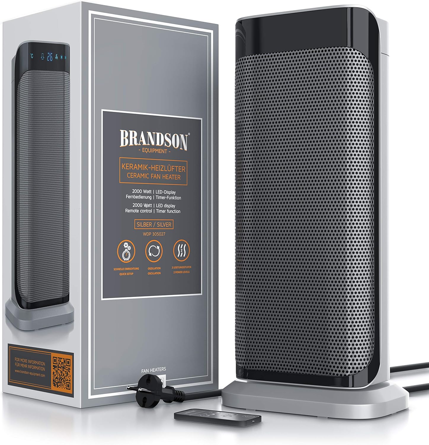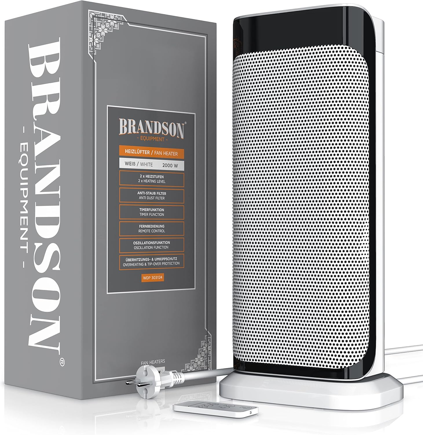 - Verwendung: Der elegante 2000W Brandson Keramik-Heizlüfter vereint eine hohe Heizleistung mit einem ansprechenden Design und hochwertigen Keramikelementen. Mit dem Schnell-Heizlüfter von Brandson können Sie schnell, sicher und energieeffizient bei geringem Stromverbrauch heizen. Dieses Gerät entfaltet seine volle Wirkung nur in gut isolierten Räumen.