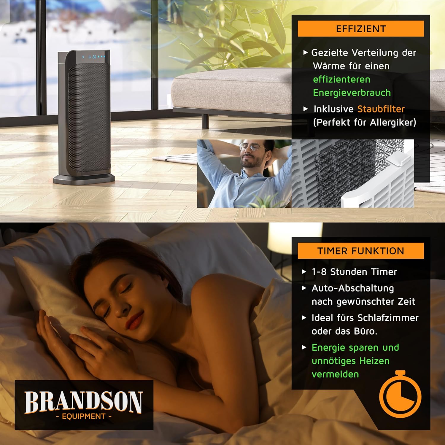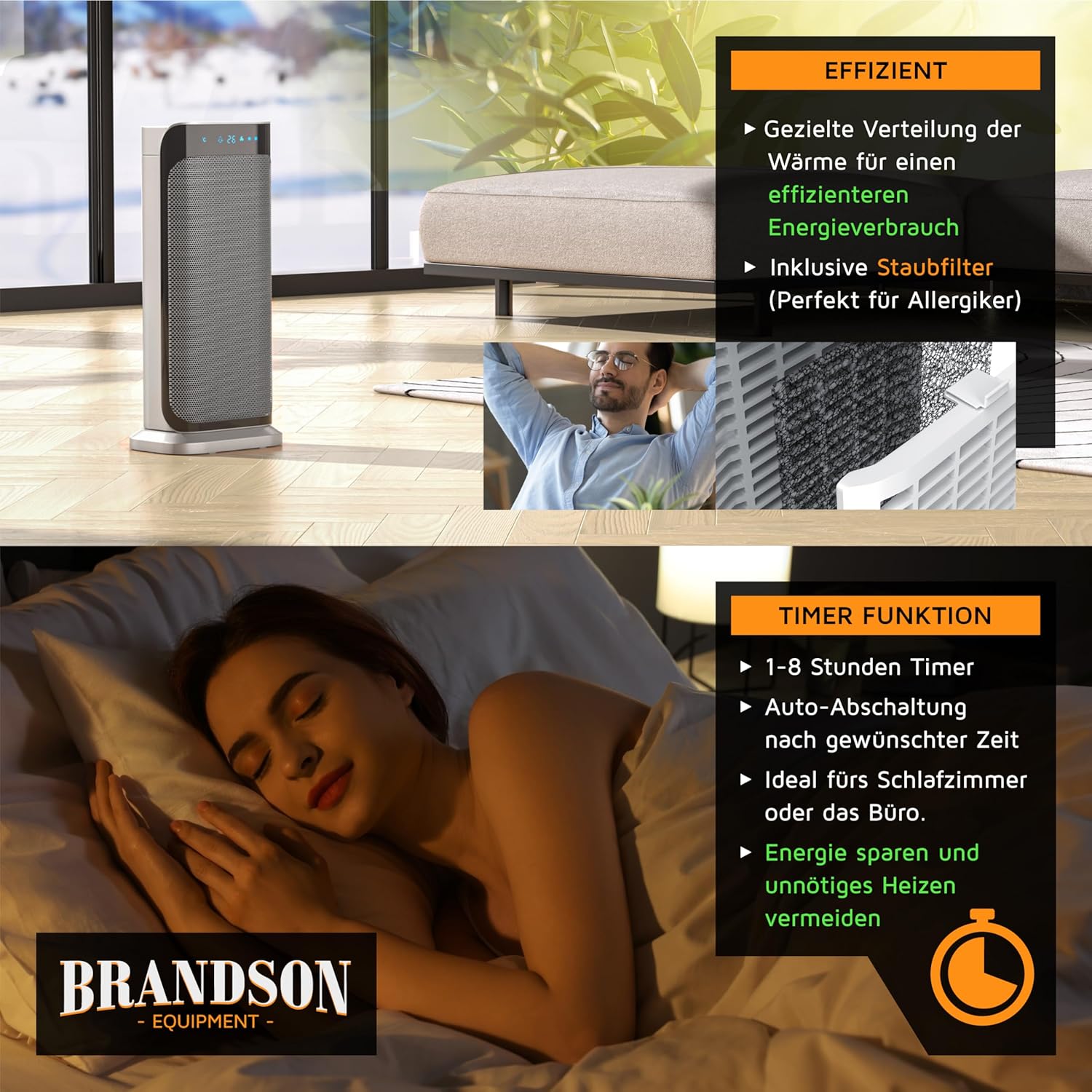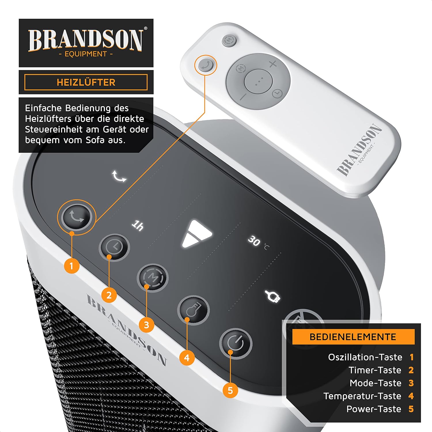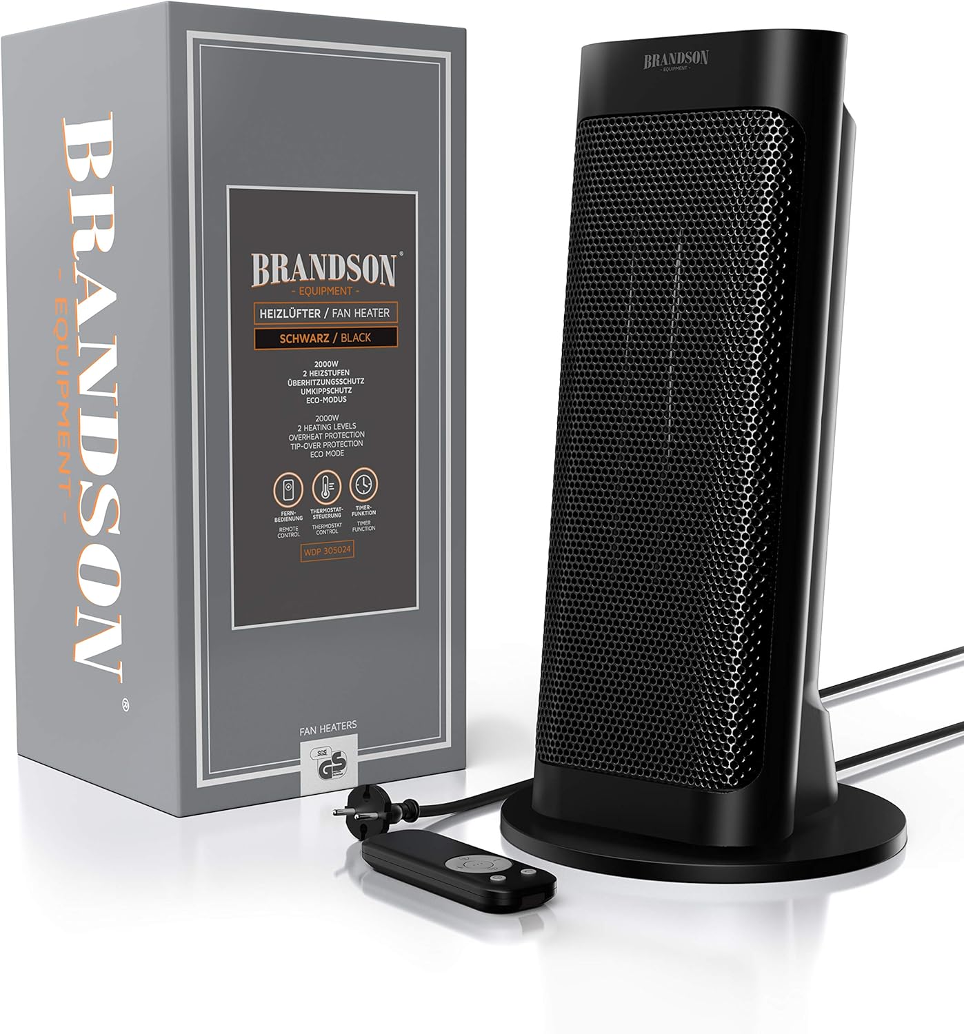 Brandson - Heizlüfter mit Fernbedienung - Preisträger - energiesparend leise Keramik-Heizlüfter Badezimmer - Oszillationsfunktion - Timer - Heizung Heater - GS zertifiziert