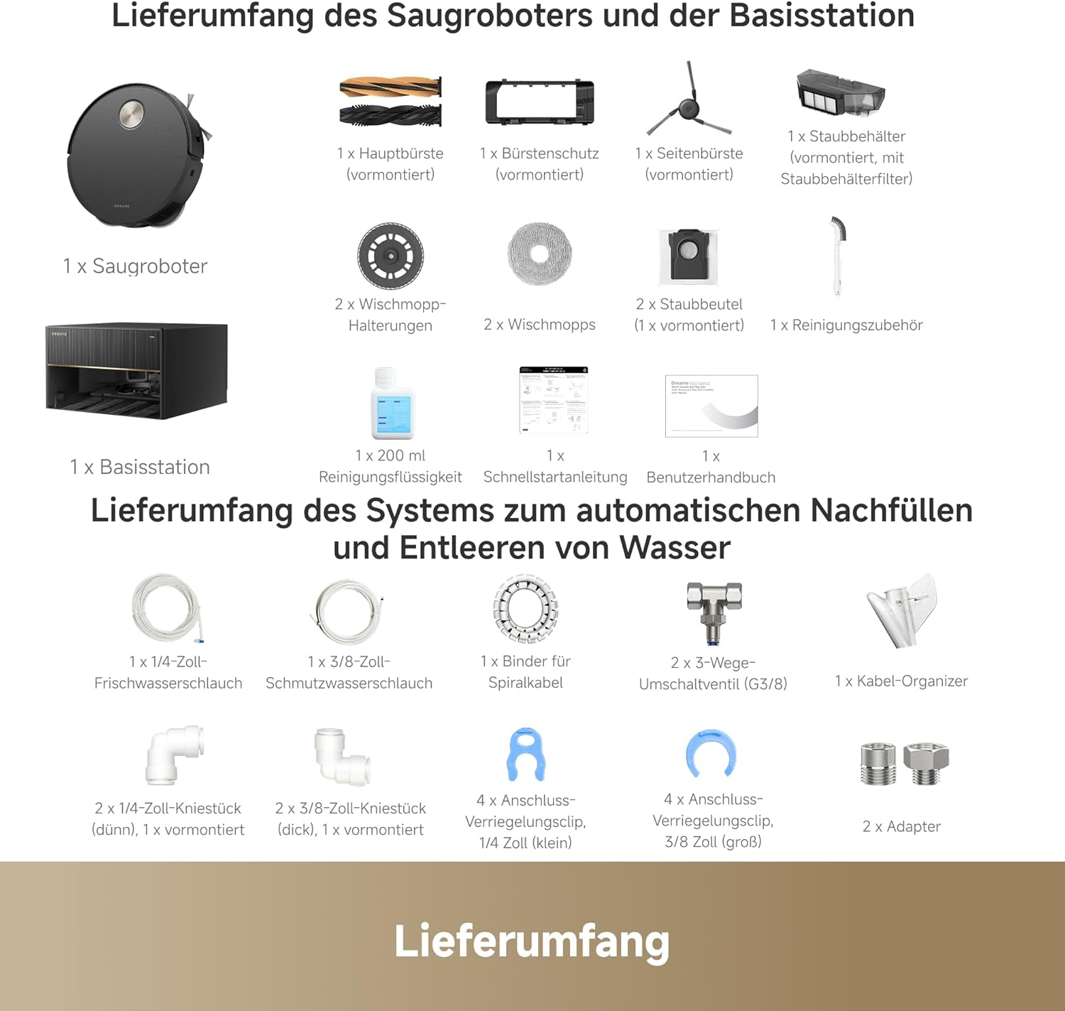 - Schwellen und Hindernisse überwinden: Mit seinen einfahrbaren Roboterbeinen überwindet der X50 Ultra Complete Türschienen, Schwellen und Hindernisse bis zu 6 cm. Er verwendet Stoßdämpfer, Silikonpads und ein OmniDirtional-Rad, um Stöße und Geräusche zu minimieren und so ein sanfteres und leiseres Reinigungserlebnis zu gewährleisten.
