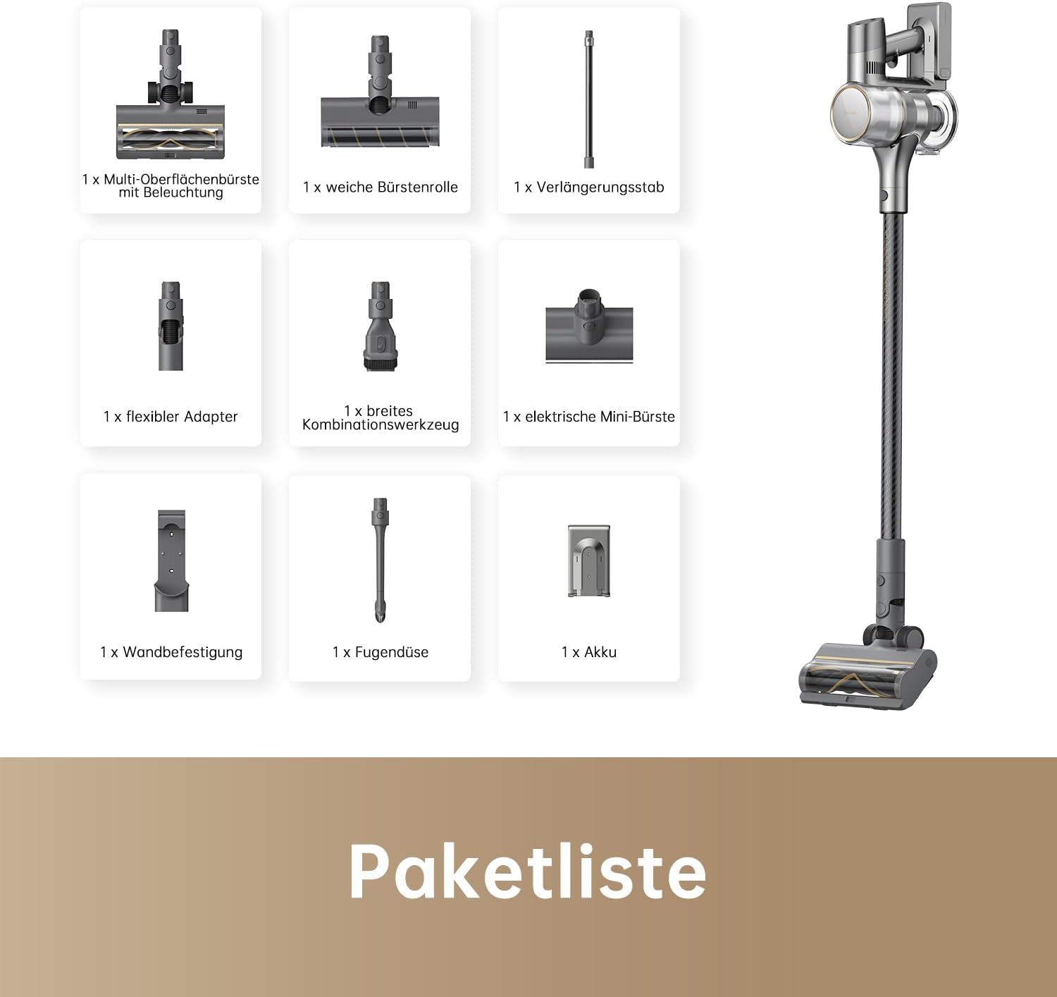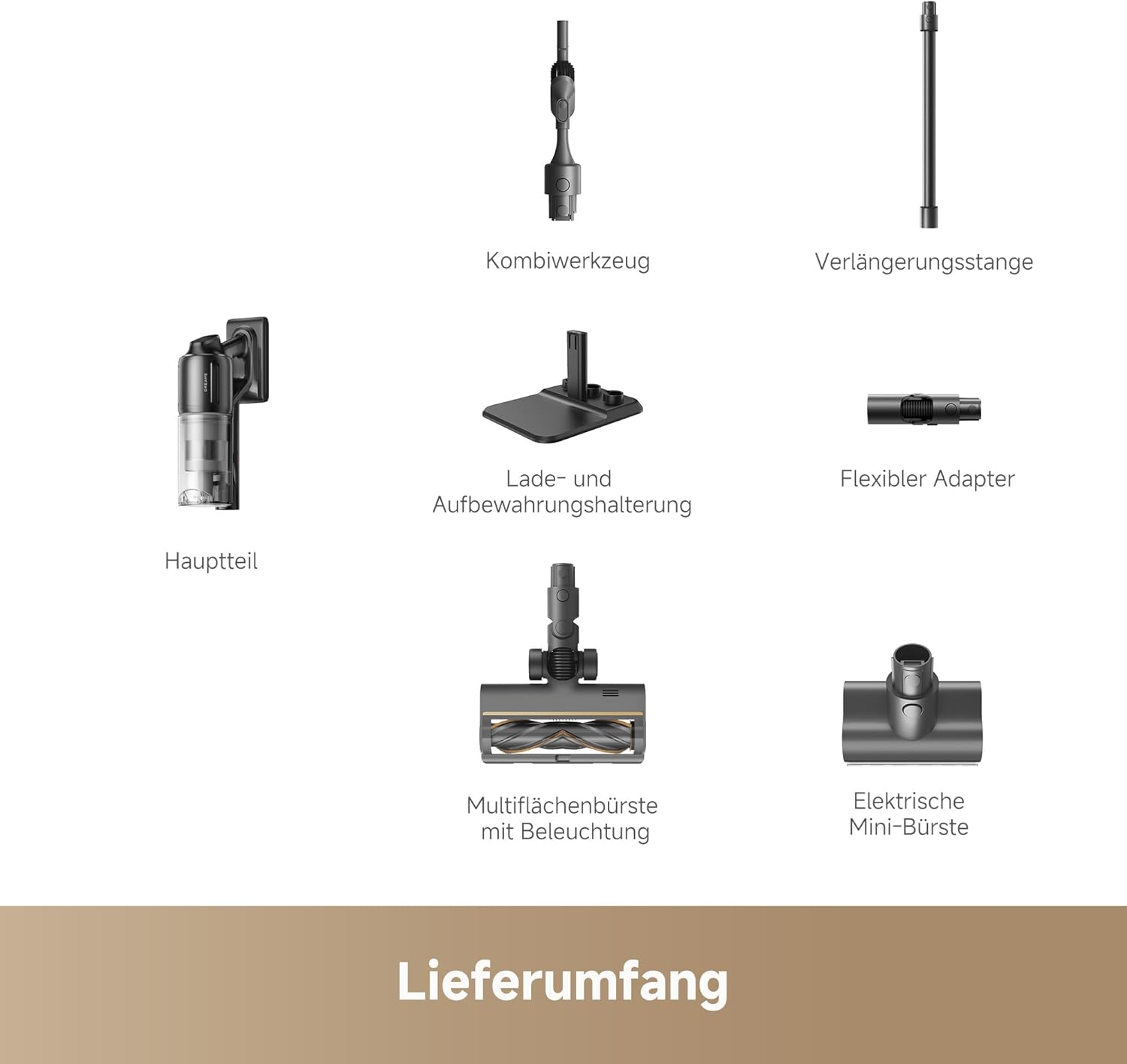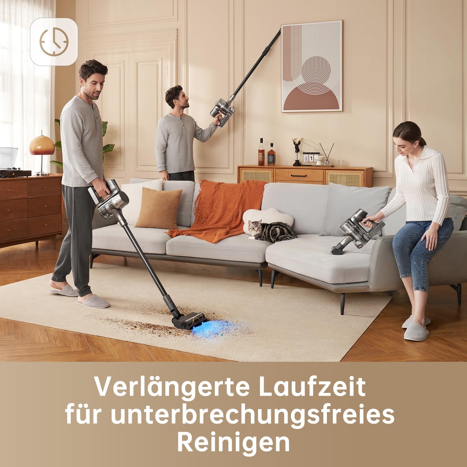- Entdecken Sie die Kraft der Reinigung: Der Dreame Z30 bietet eine robuste Saugleistung von 310 AW und einen Hochgeschwindigkeits-TurboMotor mit 150.000 U/min* für intensive Reinigung. Die langlebige Batterie sorgt für bis zu 90 Minuten ununterbrochene Reinigung. Genießen Sie die außergewöhnliche Saugkraft für gründliche Sauberkeit in Ihrem Zuhause.