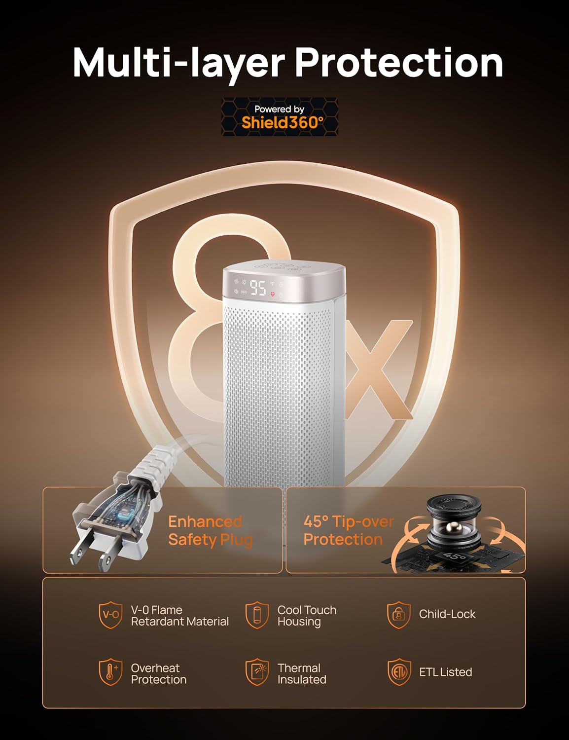 - Unübertroffene Sicherheit und Zuverlässigkeit: Genießen Sie höchste Sicherheit mit diesem Innenheizgerät, das über einen Shield360°-Schutz, Kippschutz und Überhitzungsschutz, eine 24-Stunden-Auto-Ausschaltfunktion und V-0 flammhemmende Materialien verfügt. CE-gelistet für Ihr beruhigtes Gewissen.