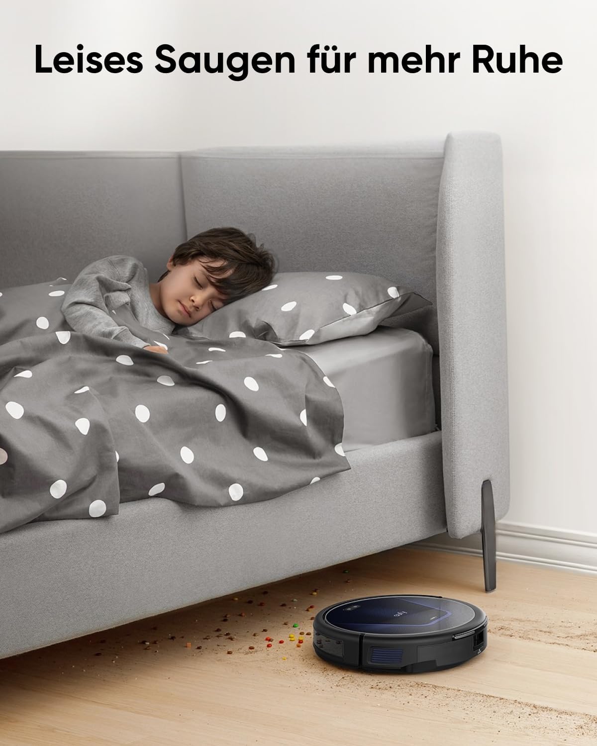 - DYNAMISCHE NAVIGATION: G50 navigiert systematisch durch deine Räume. Mit seiner schlanken Höhe von 81mm kommt der Staubsauger-Roboter mühelos unter Sofas oder Schränke.