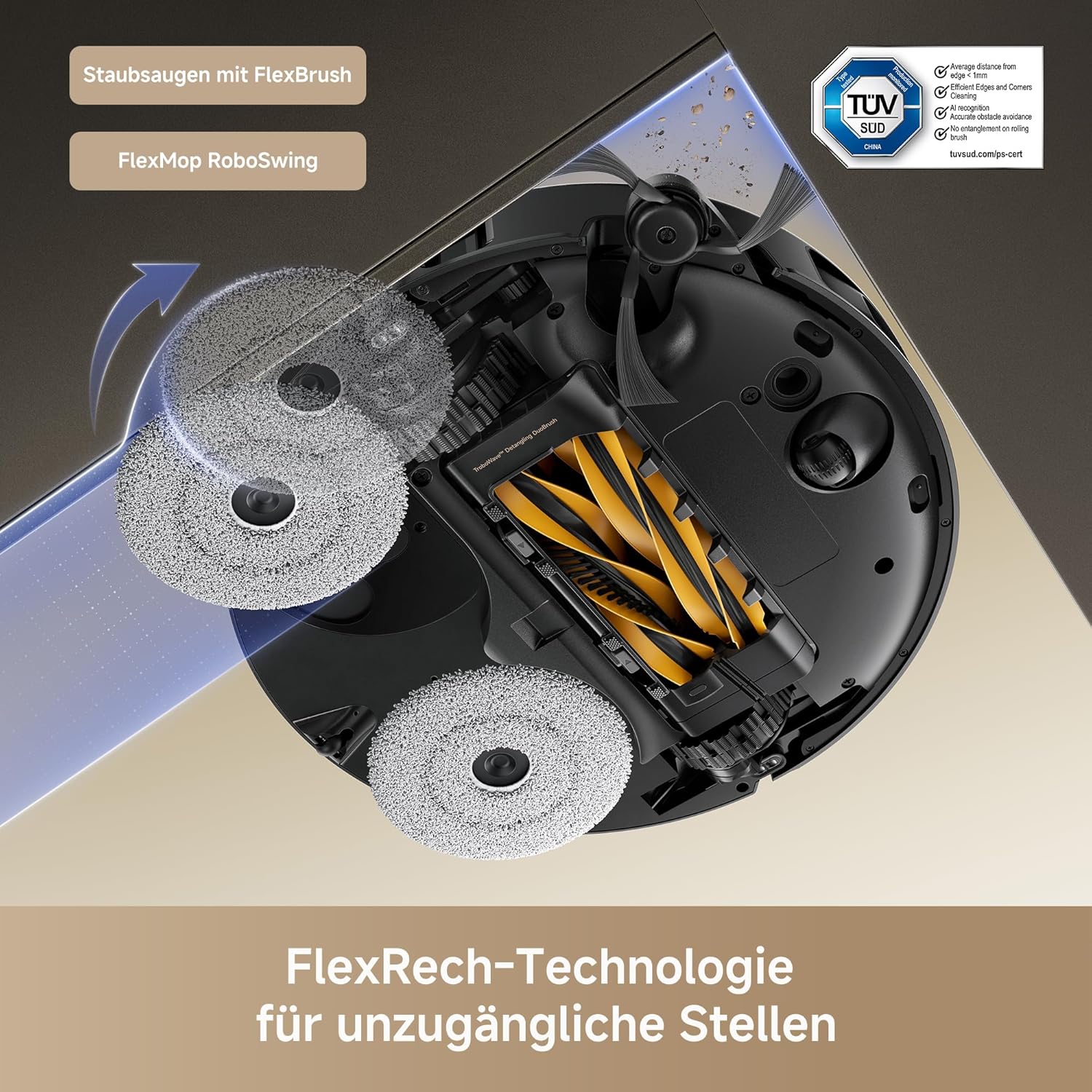 - Verbessertes, verhedderungsfreies Staubsaugen: Mit einer Saugkraft von 19.000 Pa entfernt der Roboter Staub, Haare und andere kleine und große Schmutzpartikel von verschiedenen Oberflächen; Die CleanChop-Bürste verhindert Haarverwicklungen und sorgt für eine effiziente Aufnahme von Haaren
