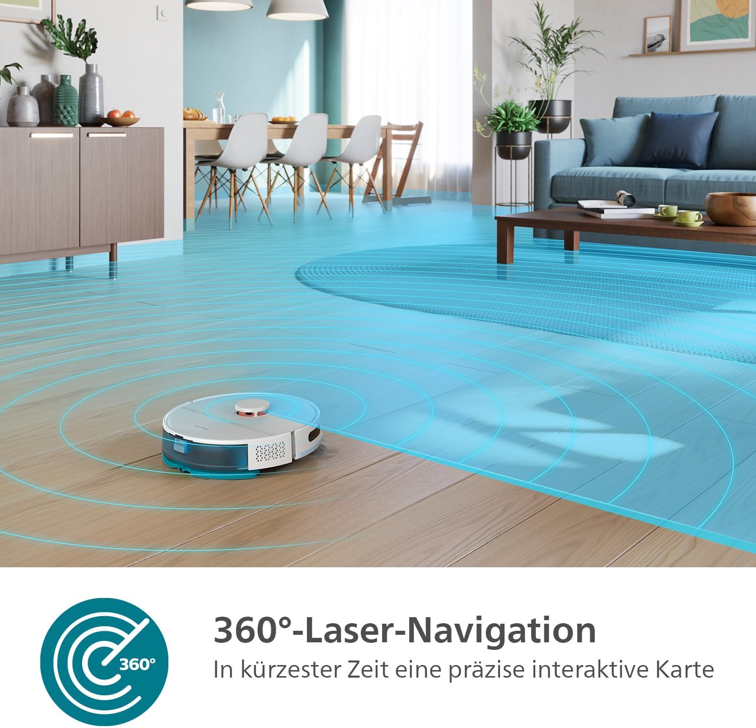 - FORTSCHRITTLICHE LASERNAVIGATION FÜR VOLLE ABDECKUNG - Nutzt 360-Grad-Scans für präzise Karten und gewährleistet gründliche Reinigung auch bei schlechten Lichtverhältnissen.